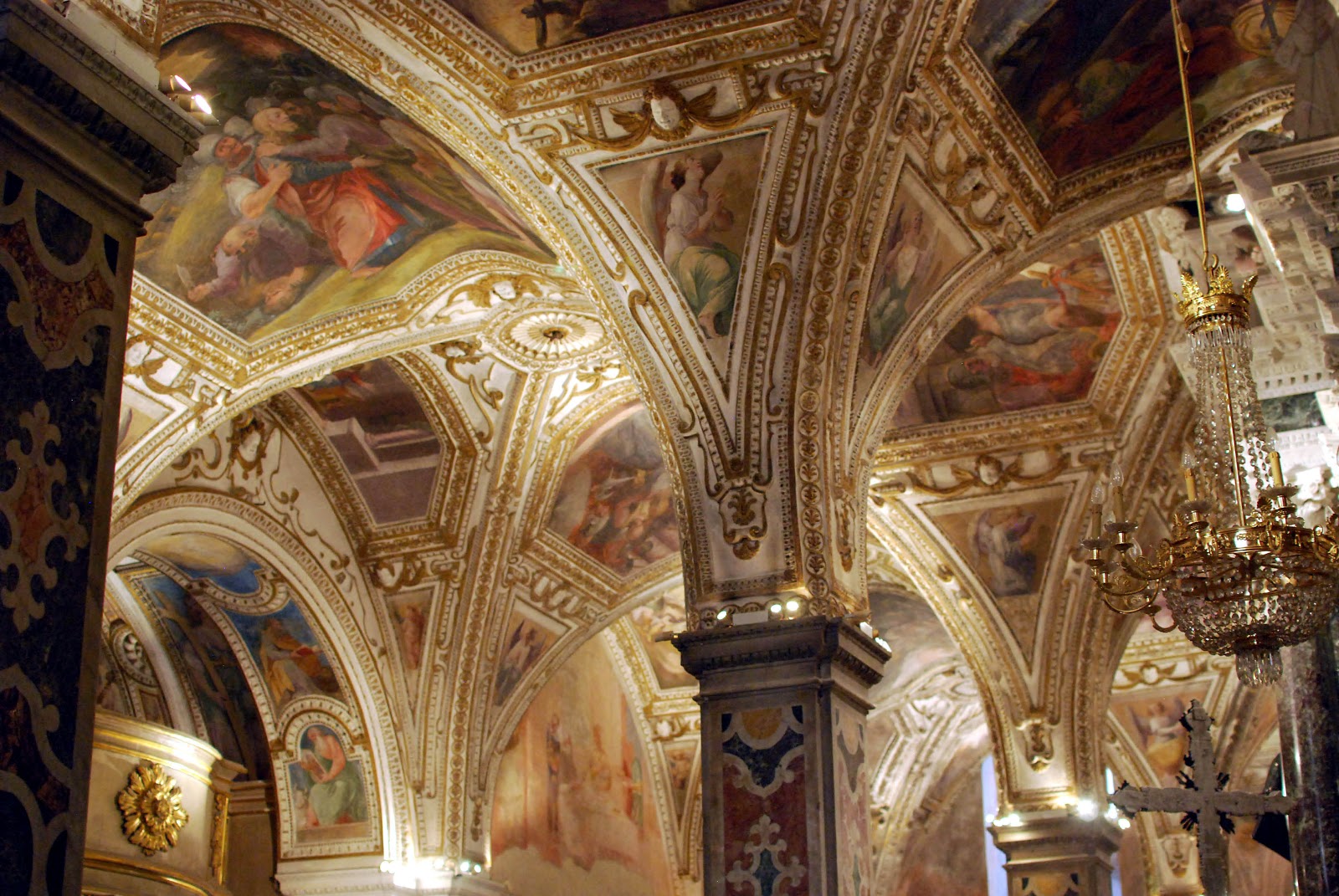 Upon leaving the cloister, we entered the Cathedral itself which is made up of three main parts. First is the original 9th Century Romanesque Basilica of the Crucifix, which currently holds a museum containing relics found on the grounds and gifted to the families of Amalfi during its most prosperous times. Second is the Crypt of St. Andrew, which houses (you guessed it) the remains of St. Andrew, brought to the Cathedral in 1206 from Constantinople for safekeeping. The final part of the Cathedral is the “new” 13th century Basilica, decorated sumptuously in Baroque style.