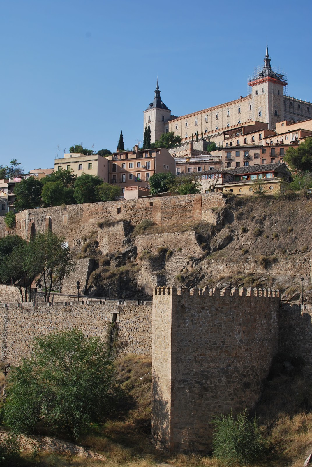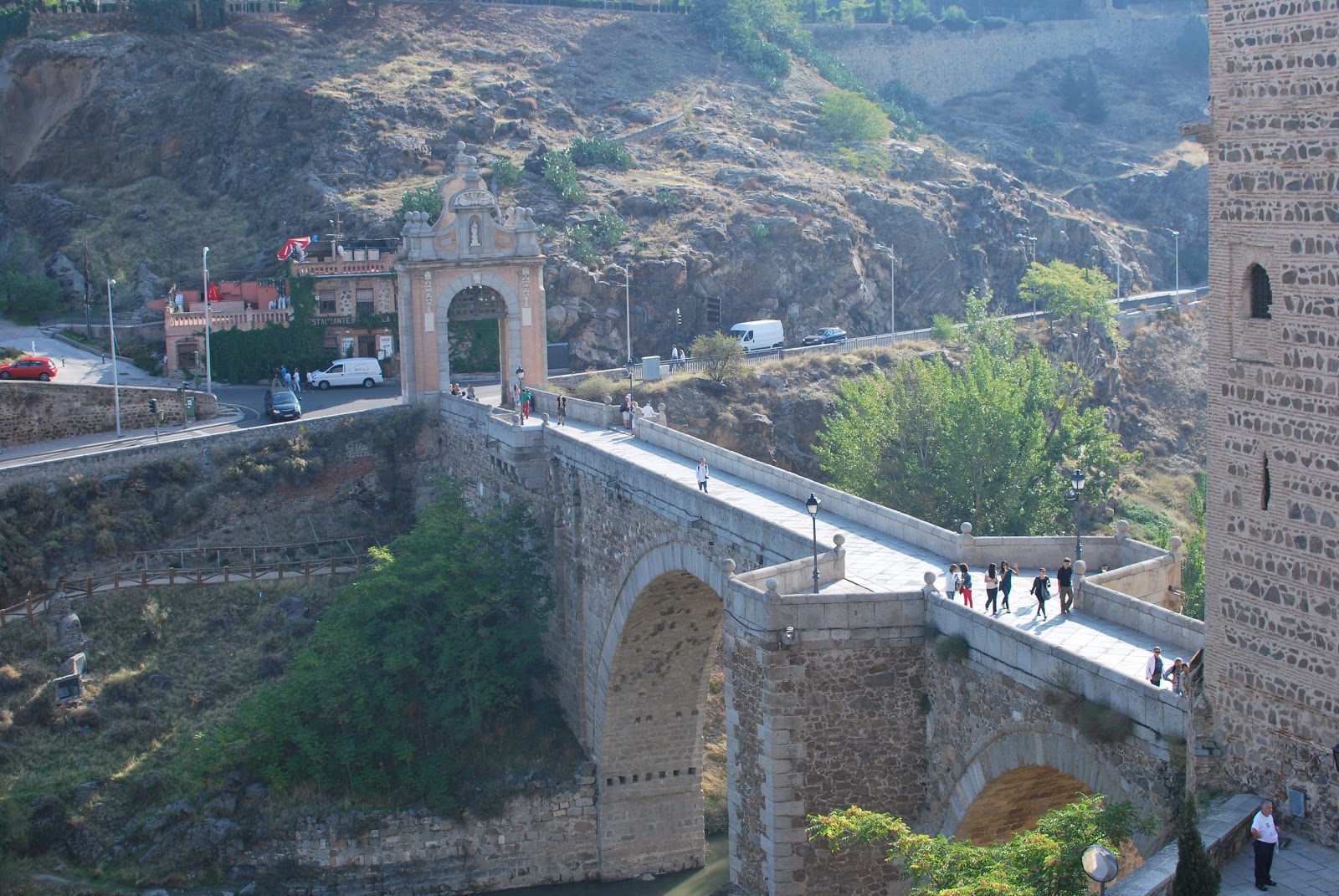 Upon exiting the station we were met by the regular row of taxis and open-top tour buses offering transportation for 6-10 Euros. Although more affordable than most transportation offers we’ve encountered, being frugal and fit we chose to start walking and see where we ended up. The choice was a good one, as Toledo is only about 5 minutes be foot from the train station (albeit uphill), and the walk offers some great views of the city walls and the Tagus River.